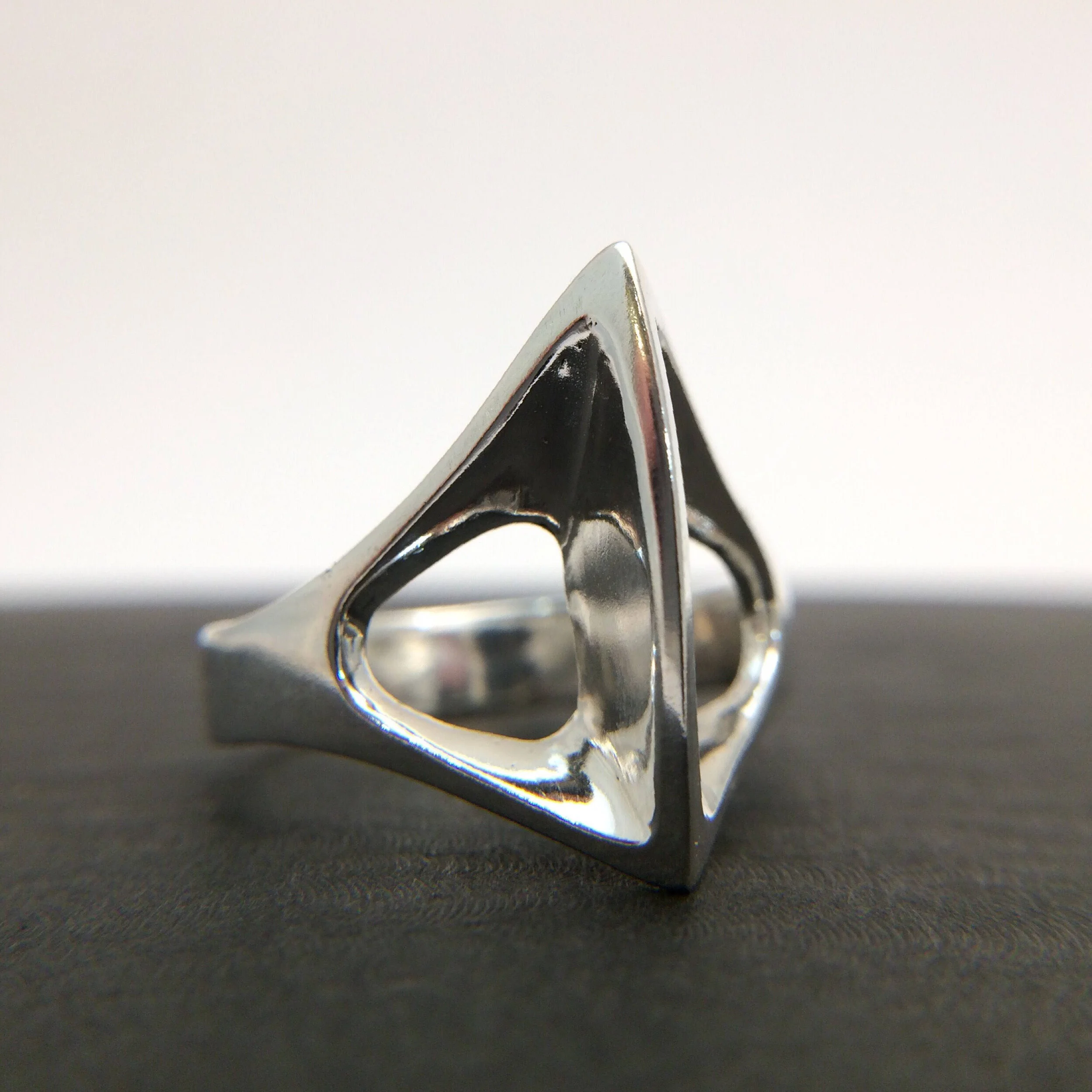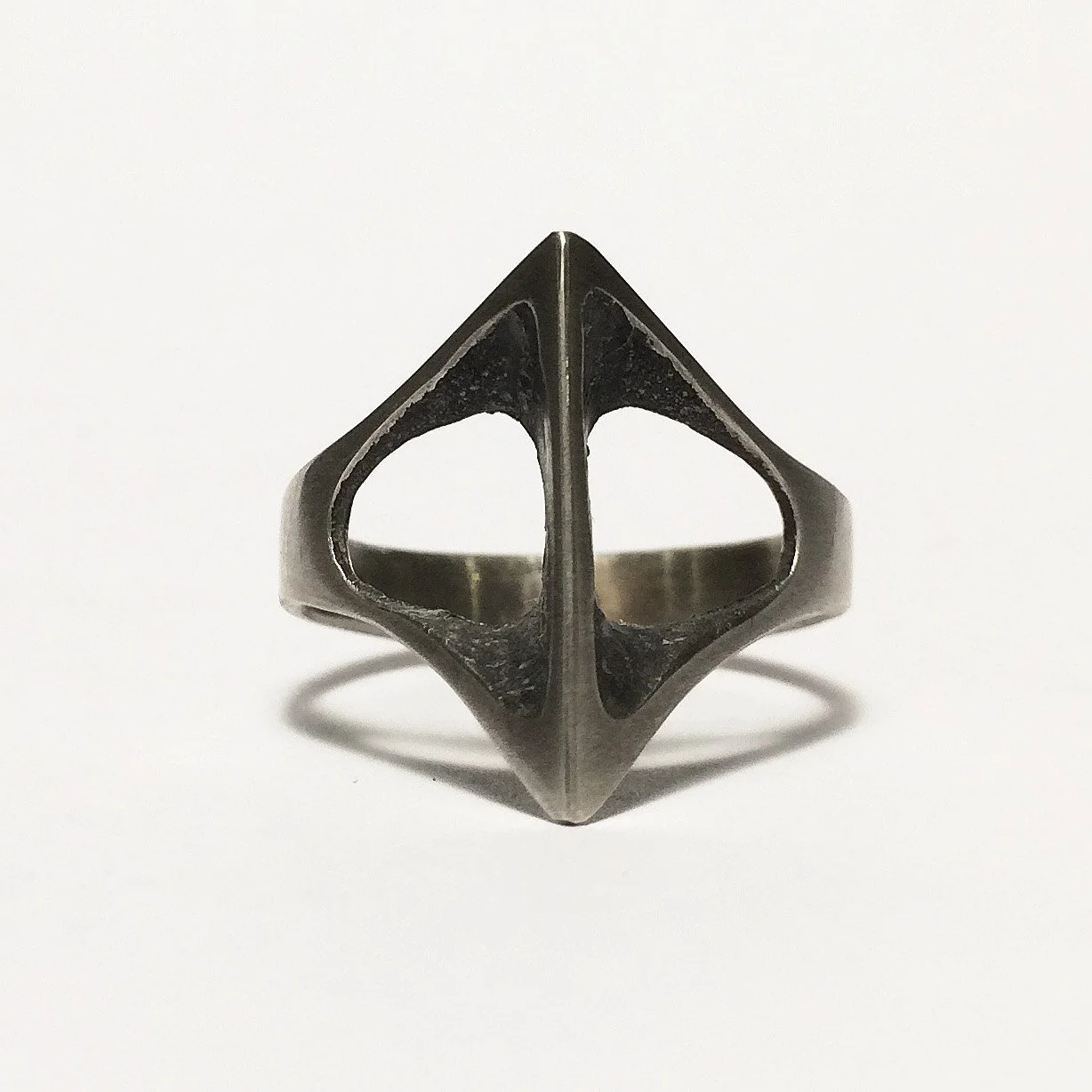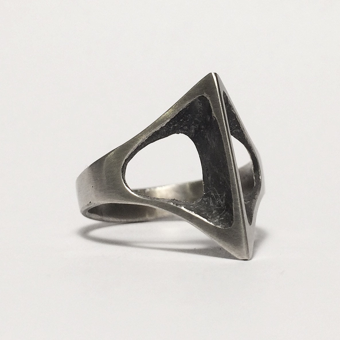 Brutalist Jewelry Sterling silver. Handmade. Unisex. This is a handmade ring, sculpted in wax an cast in sterling silver by myself. The silver is blackened, then polished for contrast (fully polished version also available). This is a unisex ring, and is a strong statement piece which looks great on both men and women.